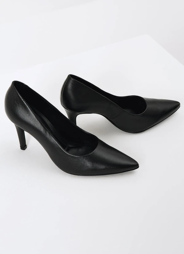 Principessa - Scarpin Salto Fino de Couro Preto Alana