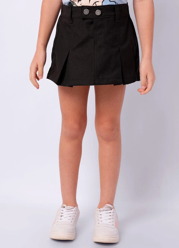 Torra - Short Saia Sarja Infantil Curto com Pregas Preto
