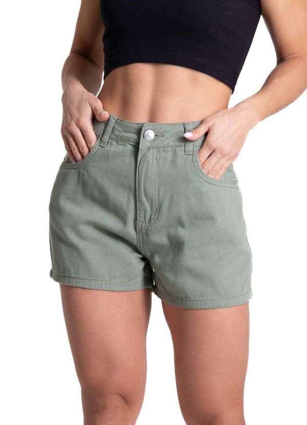Shorts confeccionada em sarja. Modelagem soltinho. Cintura média Fechamento com botão e zíper Bolsos frontais e bolsos traseiros funcionais Barra simples Tecido: Sarja Tipo de lavagem: Color Cor: verdeComposição: 100% ALGODÃO