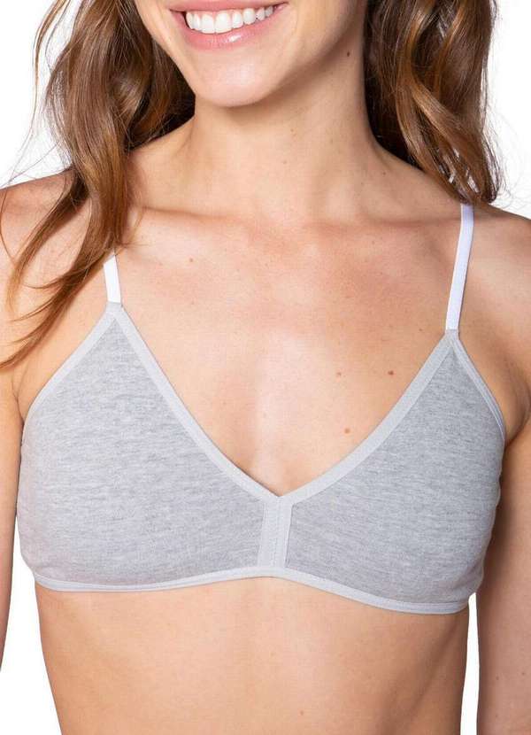 Características: Sutiã clássico em algodão Sem aro com bojo removível Alças finas fixas e com regulagem Fecho em colchete nas costas Confeccionado em algodão nobre de alta qualidade Fio compactado,que reduz a formação de pilling( bolinhas) Maior brilho e vivacidade de cores Composição: 94% Algodão, 06% Elastano