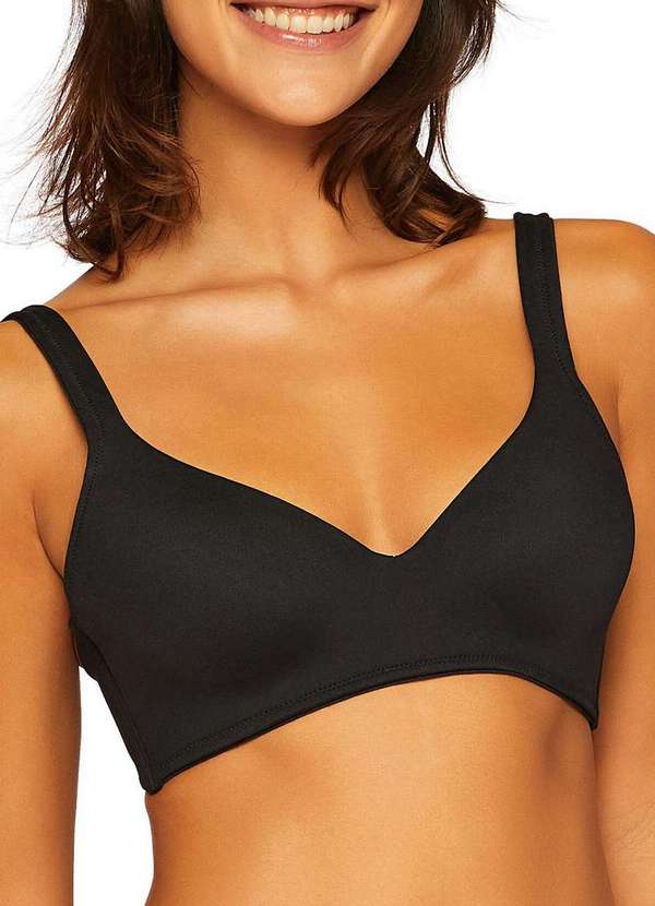 Características: Sutiã sem aro com bojo Bojo com formato natural que valoriza o decote Base reforçada com manta,confere sustentação dispensando o aro Laterais em microfibra dupla Alças fixas largas e ajustáveis reforçadas que garantem conforto aos ombros Fecho em colchete nas costas Taça: C Composição: Corpo: 88% Poliamida, 12% Elastano Forro: 100% Poliéster