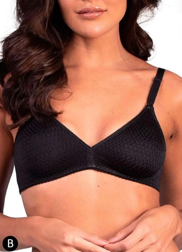Ver todas as avaliaçõesCaracterísticas: Sutiã sem aro seios em tecido pré-moldado. Modelagem é básica e confortável, proporcionando segurança e conforto no uso diário. Confeccionada em tecido com fio de Lycra®. As alças são fixas em elástico com regulagem na frente. Outros Detalhes: Taça B. Modo de Lavagem: Lavar a mão. Não usar alvejante. Não secar em tambor. Não passar a ferro. Não limpar a seco. Composição: Corpo: 88% Poliamida e 12% Elastano.