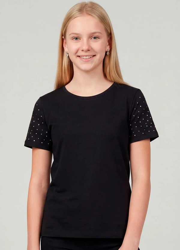 Minty - T-Shirt Feminina com Rebite e Strass Preto