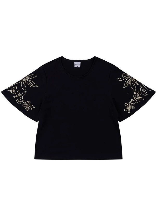Malwee - Blusa Floral em Puff Preto