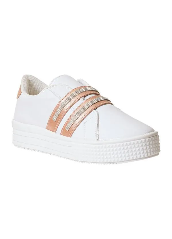 Perfecta - Tênis Casual Branco com Detalhe em Strass