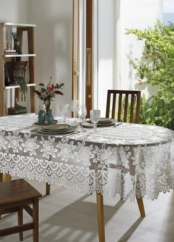 Lar e Lazer - Toalha Oval Artesanal Branca 1.30m X 1.80