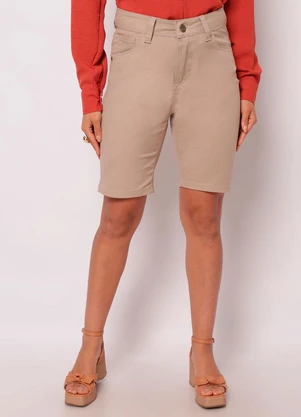 Bermuda Sarja Feminina Reta com Bolsos Bege