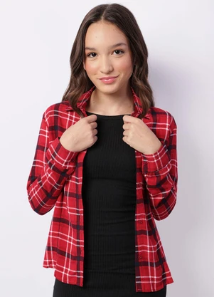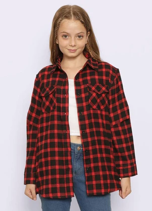 Camisa Juvenil Manga Longa Xadrez Vermelha