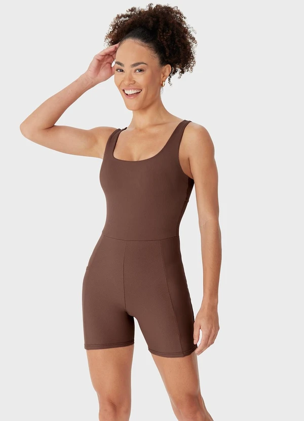 Malwee - Macaquinho Canelado com Bolso Marrom