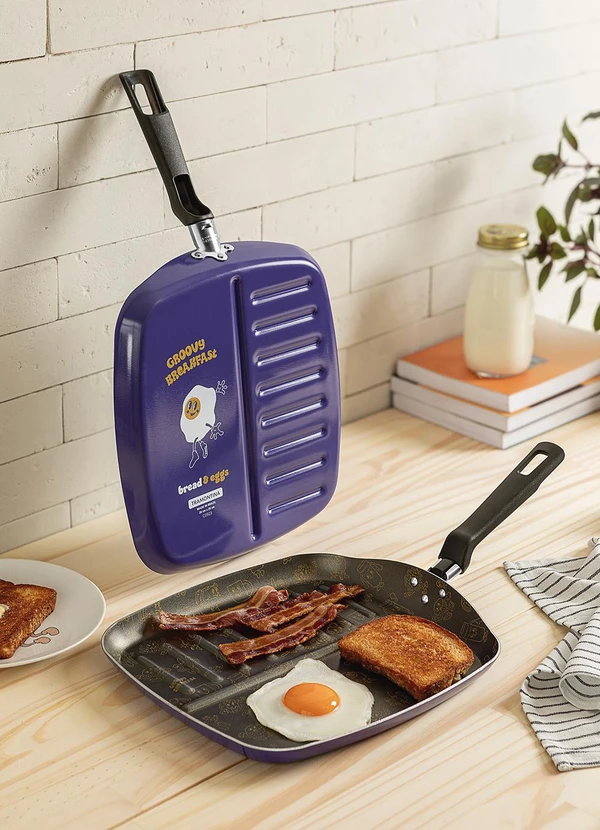 1 Bistequeira Tramontina Groovy Breakfast em Alumínio com Revestimento Interno em Antiaderente Starflon Max e Externo Siliconado Azul 26 cm.