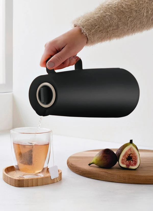 1 Bule Térmico Tramontina Exata em Plástico Preto com Ampola de Vidro 1 L.