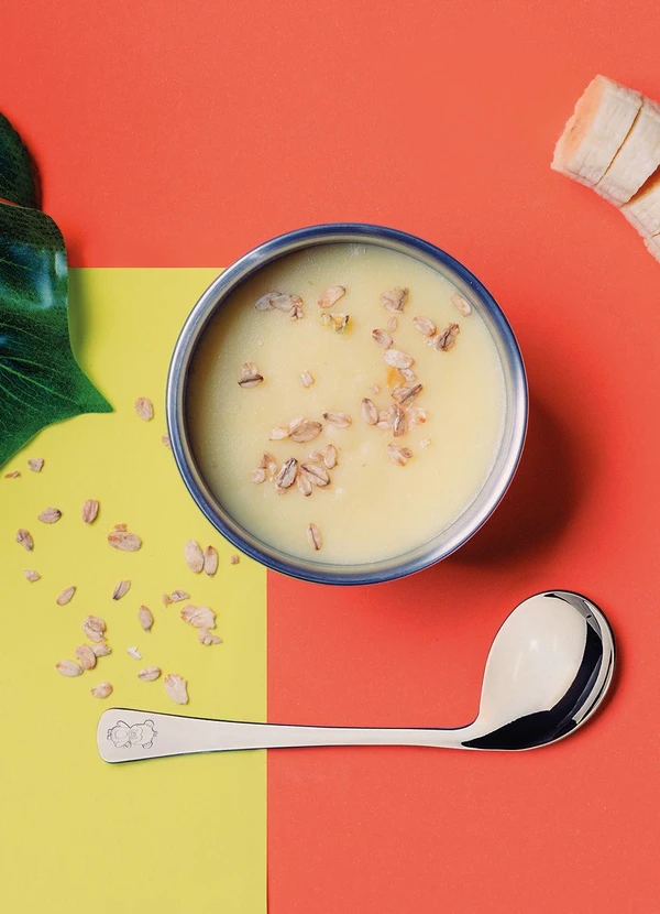 O seu formato facilita o manuseio e permite que a criança leve a comida até a boca com mais facilidade, incentivando sua independência e seu desenvolvimento. A colher é produzida totalmente em aço inox, por isso não solta nenhum resíduo nos alimentos, mantendo-os saudáveis e próprios para consumo.
