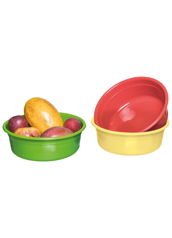 1 Kit 3 bacias coloridas em plástico (Verde,amarelo, vermelho).