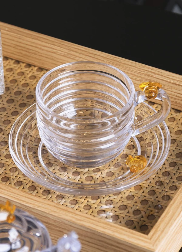 1 Xícara com pires em cristal ecológico com detalhe de abelhinhas douradas.