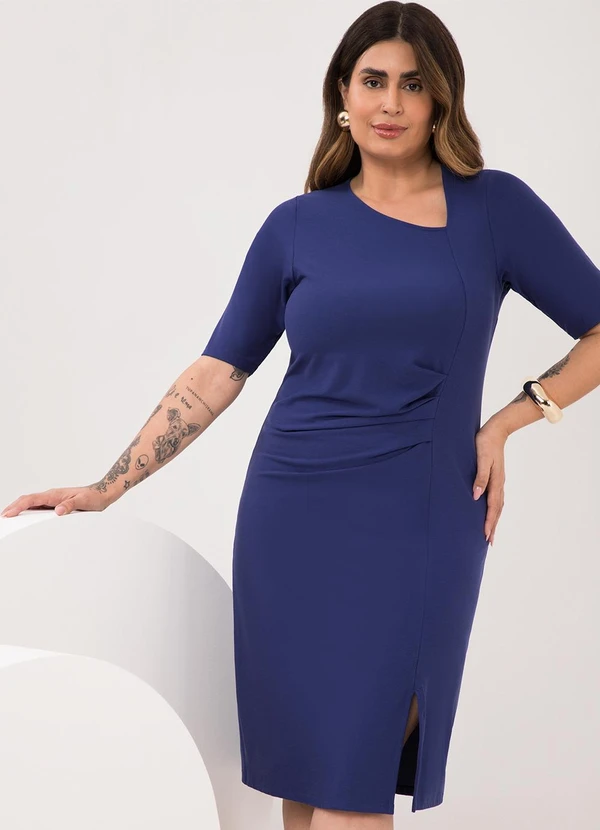 Lunender Mais Mulher - Vestido com Mangas 3/4 Plus Size Crepe Azul