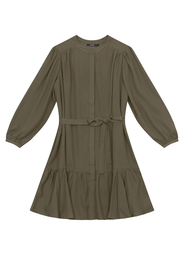 Enfim - Vestido Curto Evasê em Crepe Verde Militar