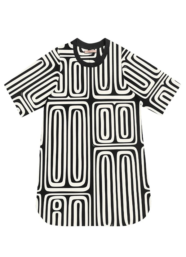 Angel - Vestido Curto Viscose Estampada Preto