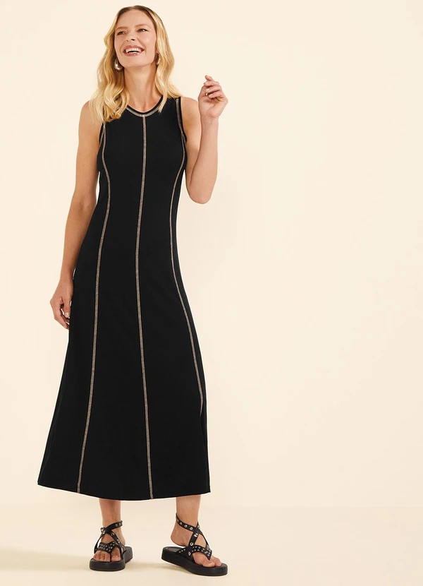 Marialícia - Vestido Feminino Midi Fio Contraste Preto