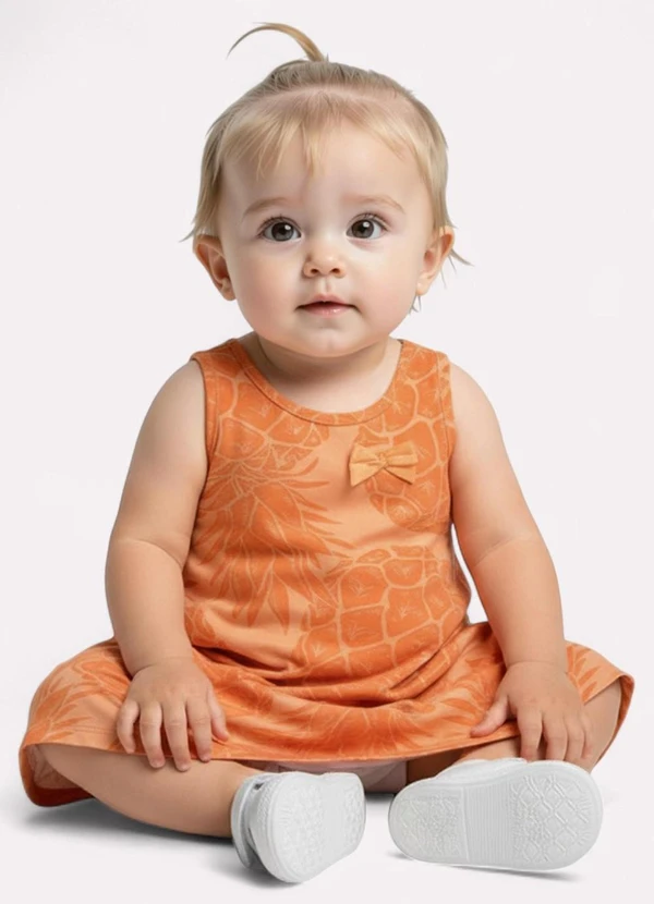 Kyly - Vestido Infantil Menina Abacaxi Laranja