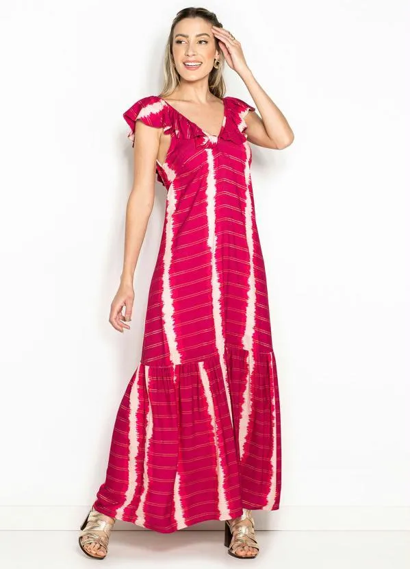 Maria Filó - Vestido Longo de Viscose Estampa Isla Rosa Pink
