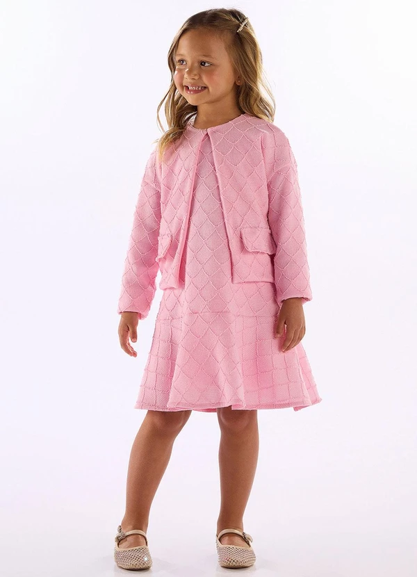 Quimby - Vestido Malha Texturizada Godê Rosa