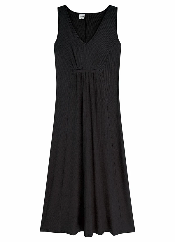 Malwee - Vestido Mídi Amplo Canelado Preto