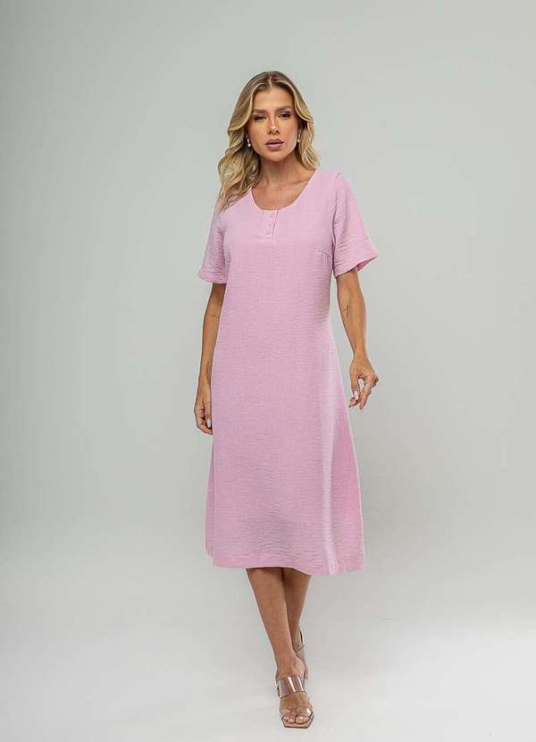 Salvatore Fashion - Vestido Midi Botões Frontais Rosa