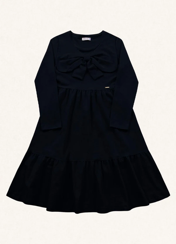 Fakini Kids - Vestido Midi Manga Longa Preto