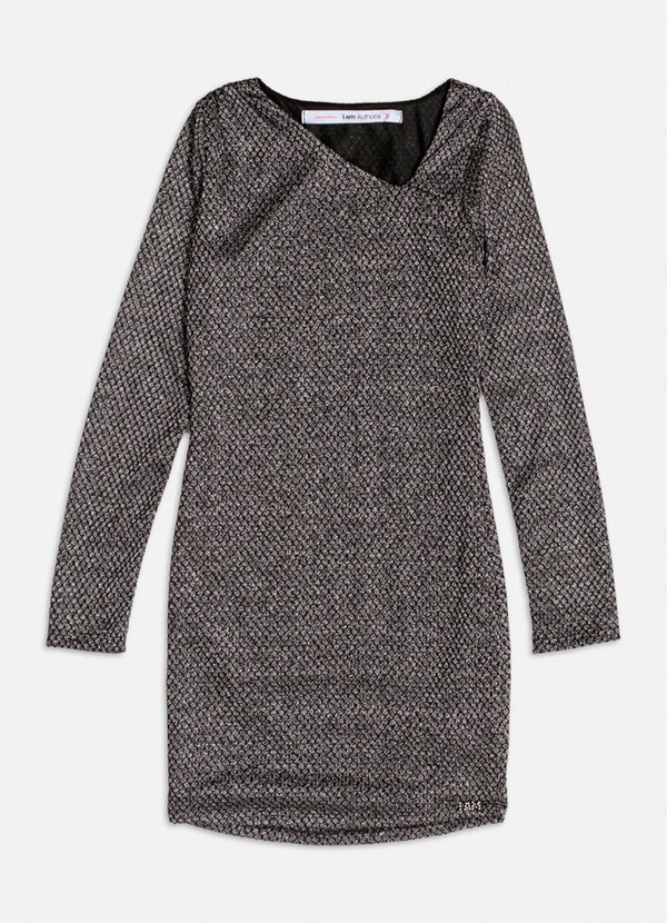Authoria - Vestido Preto Texturizado com Brilho Preto